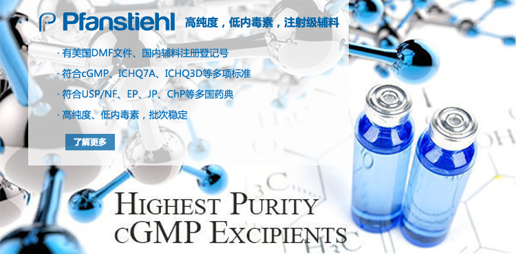 “熱烈祝賀Pfanstiehl的注射級甘氨酸Glycine(G-140)喜獲CDE登記號F20250000403, 這是Pfanstiehl產品獲得的第18個CDE登記號!”甘氨酸在醫藥輔料制劑中應用廣泛,, 可作為緩沖劑,增溶劑,穩定劑等,具有諸多優勢。Pfanstiehl秉承一貫高品質理念,為滿足全球生物制藥行業對于高品質甘氨酸的需求,隆重推出的注射級甘氨酸Glycine (G-140), 具有超高純度,超低內毒素,超低金屬殘留的特點,單獨檢測29種金屬離子,并且新增DNA,RNA,DNA酶,RNA酶和脂肪酶,亞硝酸鹽等多項質量指標的檢測,符合多國藥典規定(USP, EP, BP, JPE, ChP),可用于生物治療性藥物和疫苗的生產。產品信息:· 產品名稱:Glycine, High Purity, Low Endotoxin, Low Metals, USP, EP, BP, JPE, ChP (G-140)· 中文名稱:甘氨酸· 分子式:C2H5NO2· 分子量:75.07 g / mol· CAS號:56-40-6· 產品貨號:G-140產品特點: · 超高純度,超低內毒素,超低微生物含量,超低金屬雜質殘留· 質量指標新增DNA,RNA,DNA酶,RNA酶,脂肪酶和亞硝酸鹽檢測· 符合多國藥典:USP, EP, BP, JPE, ChP· 符合ICH Q3D標準· 符合GMP標準· 已獲DMF和CDE登記號 產品應用:· 緩沖劑· 穩定劑· 增溶劑如果您對Pfanstiehl注射級別Glycine G-140感興趣,歡迎聯系Pfanstiehl 中國區代理商北京西美杰科技有限公司獲得如下詳細的產品概況說明文件和測試樣品。Pfanstiehl Inc.最新產品系列如下,歡迎聯系北京西美杰科技有限公司獲取100g裝免費樣品。北京西美杰科技有限公司為Pfanstiehl中國代理,為客戶提供完善的技術支持與售后服務。歡迎撥打西美杰客服電話400-050-4006或者登陸網站www_xmjsci_com.rjtqld.mobi了解更多信息。 更多>西美杰介紹